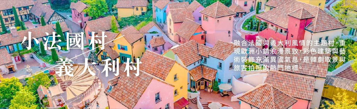 【小法國村】小法國的設計概念是以「花、星星、小王子」為主題,也是小王子故事的主題樂園。另外在這裡也可以看見許多法國象徵-「雞」的雕刻和藝廊,也可以聽見從200年歷史之久的音樂盒中放出的優美旋律的音樂盒店,以及花草芳香店、紀念品店等,更可體驗獨特的法國文化。