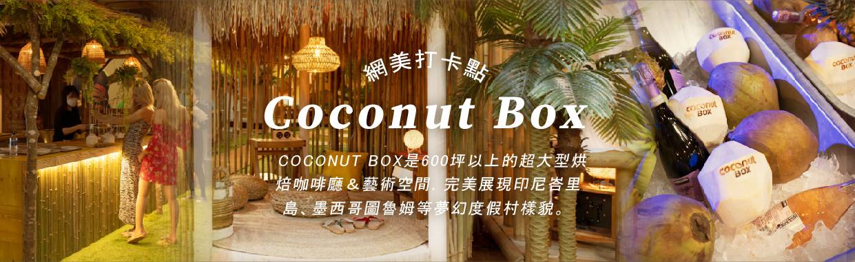 【Coconut Box】是一個以「城市裡的峇里島度假村」為概念,提供豐富展覽和表演體驗的遊樂空間。全館共有32間度假屋以及7個體驗區,不僅能在獨立的空間放鬆休憩,還能遊走各展區體驗多樣展覽的樂趣。