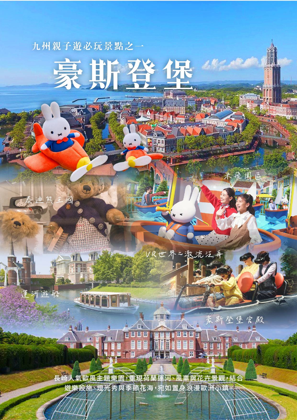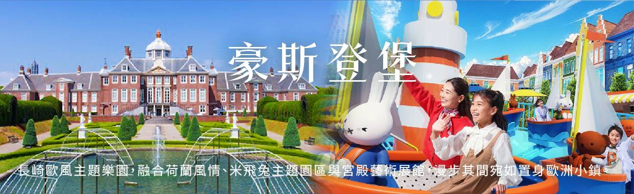 【豪斯登堡】豪斯登堡是長崎縣的主題樂園,園內設計全部仿造中世紀的荷蘭景象造鎮。遊樂園的名稱是以荷蘭皇室家族的宅邸名稱來命名。園內有如詩如畫的運河風光、頗具象徵性的風車以及優美的庭園及建築,到處都瀰漫著歐洲風情。季節性花卉更為遊樂園增添不少魅力。旅客可以在遊樂園內欣賞美麗的自然風光、遊覽景點、從眾多餐廳中挑選一間餐廳品嘗美食,還可以搭乘觀光遊艇暢遊園內運河。遊樂園還會依據不同季節舉辦各種活動,例如春季時的鬱金香賞花祭和夏季的煙火競賽等。主題樂園區重建的荷蘭造型建物內會舉辦各種活動。其中有許多是以3D投影科技構成的現代劇院。此外,還有鬼屋、鏡面迷宮及摩天輪,烏特勒支區內仿造德姆特倫高塔的高塔城上還有360度全視野的觀景台。港口區內的主要遊樂設施是劇院及模仿豪斯登堡宮殿的華麗建物,宮殿內還有美術館。