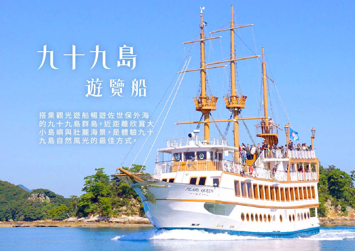 【九十九島遊覧船】九十九島是指佐世保灣外側向北到平戶的25km的海域。在這複雜的海域幾乎全區域都被指定為「西海國立公園」,島的密度被稱為日本第壹。在此本公司特別安排九十九島遊覽船珍珠皇后號或未來號,帶您遊覽長崎縣佐世保港外的「九十九島」地區超過200座的美麗小島。