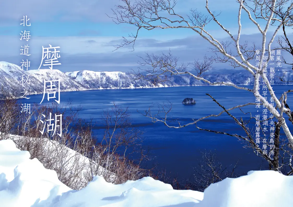 【摩周湖】是摩周岳的火山形成的火山口湖。湖面在海拔350公尺,周長20公里,面積19平方公里,最高的的水深達212公尺,周圍被高150至350公尺的峭壁所圍繞,人類無法靠近。沒有流入或流出的河川,且沒有魚類,透明度最高時接近40公尺,曾經是世界上透明度最高的湖泊。