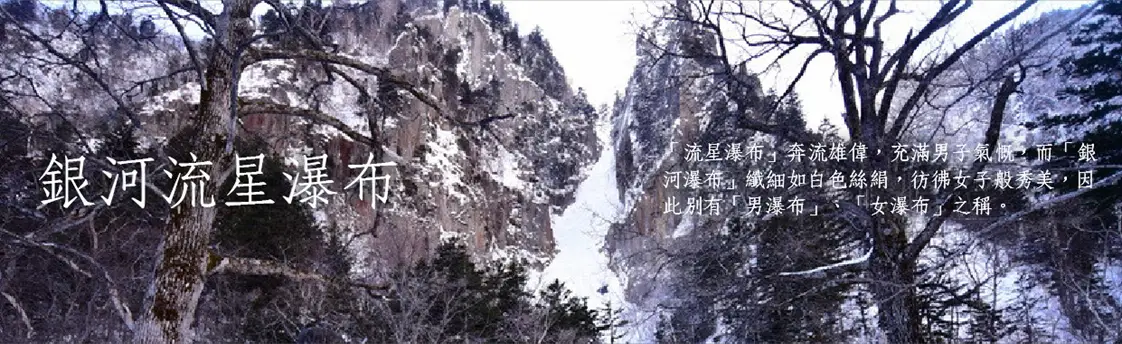 【銀河、流星瀑布】層雲峽谷中最著名,也被比喻為一對戀人的別名男瀧的『流星瀑布』,彷彿一捆粗線軸般從80公尺高的斷崖急速滾下,頗具一番豪情;而像幾條白絲線的『銀河瀑布』,則慢條斯理地從120公尺高的斷崖緩緩流下,難怪另稱女瀧,名列日本瀑布百選的這兩個瀑布,對稱地鑲嵌在谷壁上,觀望比較起來格外有趣,也是遊客合影留念的好所在。