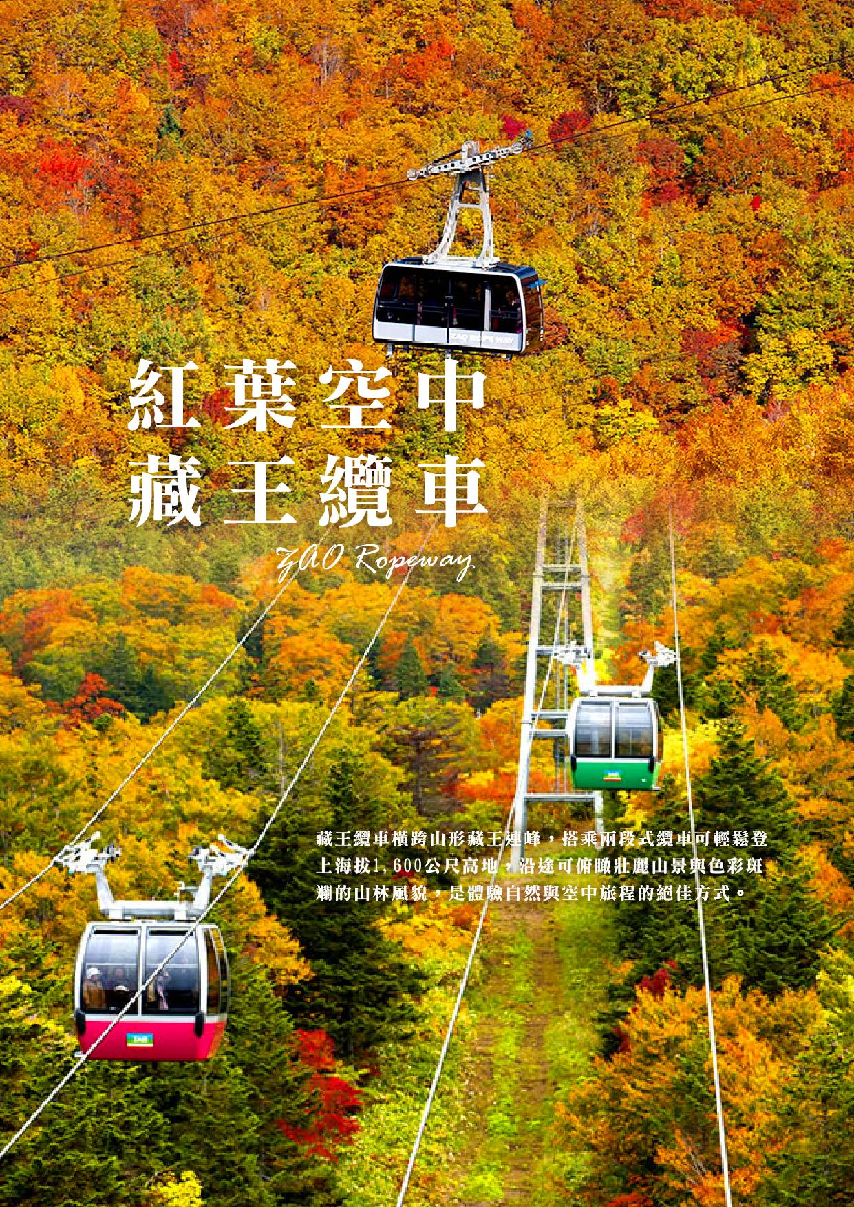 【藏王纜車】特別安排藏王纜車,藏王纜車(蔵王ロープウェイ)位於日本山形縣,是通往藏王連峰的主要交通工具之一,特別適合秋季前往欣賞壯麗的紅葉景觀。纜車分為兩段: