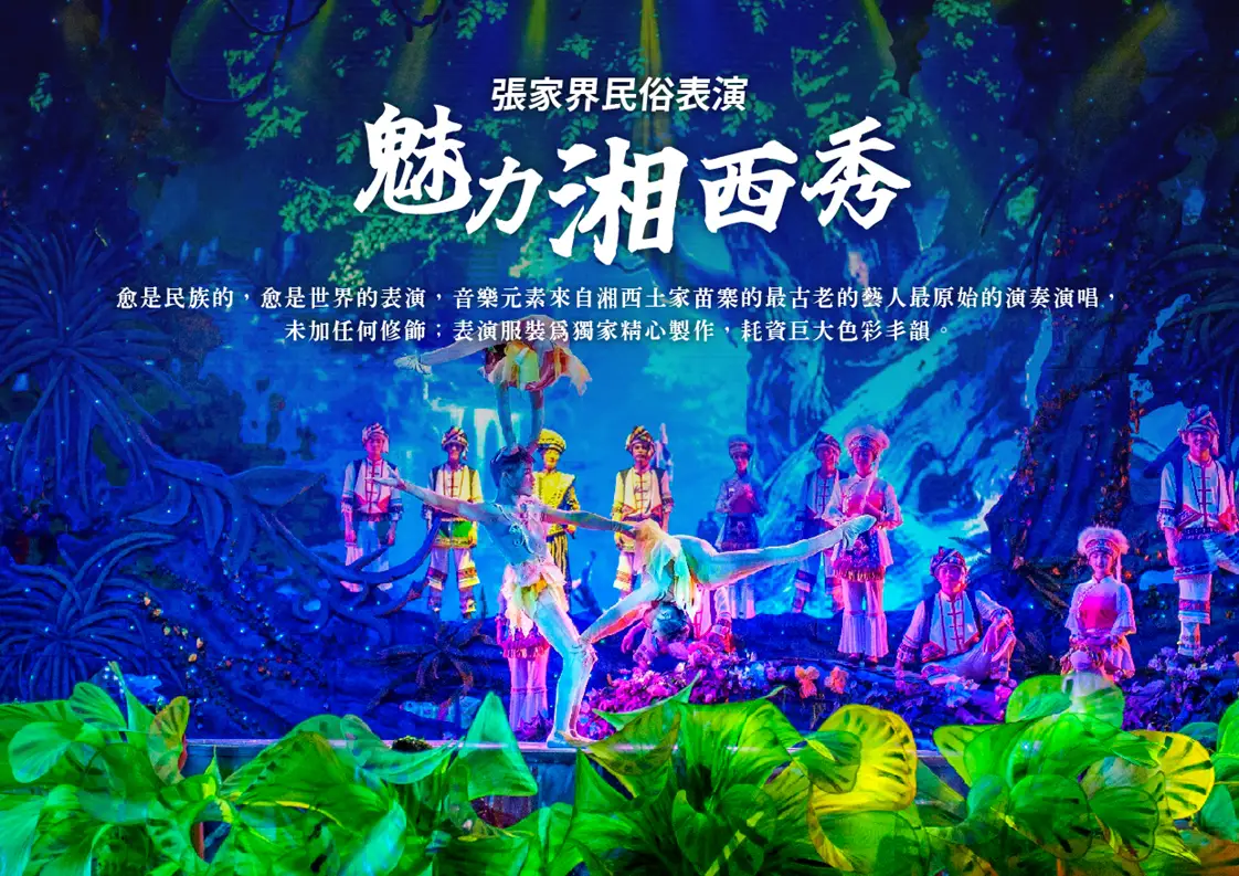 《魅力湘西秀》這是一場極具民族特色的大型表演,匯聚了湘西地區的土家族和苗族文化,通過歌舞、戲劇和實景演出展現出湘西濃郁的風土人情和歷史傳承。節目內容包括熱情奔放的苗族舞蹈、扣人心弦的巫傩文化表演,以及驚險刺激的「上刀山」「下火海」等傳統絕技,給觀眾帶來視覺與心靈的震撼,是了解湘西文化的必看演出之一。
