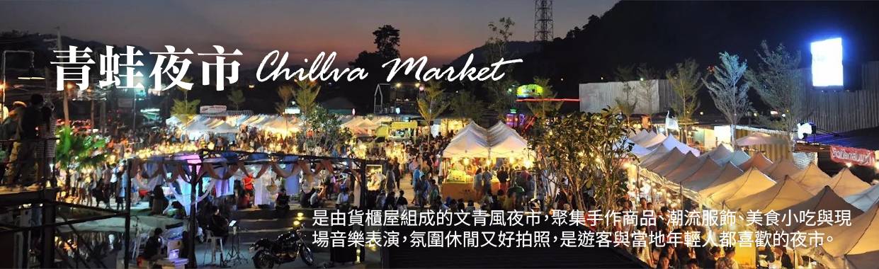 【青蛙 CHILLVA 夜市】是一個結合文青、潮流與在地小吃的夜市。氛圍很有特色,深受當地年輕人與旅客喜愛。特色氛圍:①文青工業風:以貨櫃屋和木質小店為主,搭配霓虹燈、手繪塗鴉牆,拍照很有型。②輕鬆 Chill:不像傳統觀光夜市那麼擁擠,逛起來節奏悠閒,適合邊吃邊拍照。③在地年輕文化:聚集許多本地潮牌、手作飾品攤位,是觀察普吉年輕人生活的好地方。 美食亮點:①泰式街頭小吃:炸雞、香蕉煎餅(Roti)、冬蔭功、烤海鮮、芒果糯米飯。②創意甜點飲品:彩虹珍珠奶茶、泰式奶茶冰沙、新鮮椰青。③特色小吃:烤魷魚串、泰式炸香蕉、椰子冰淇淋。