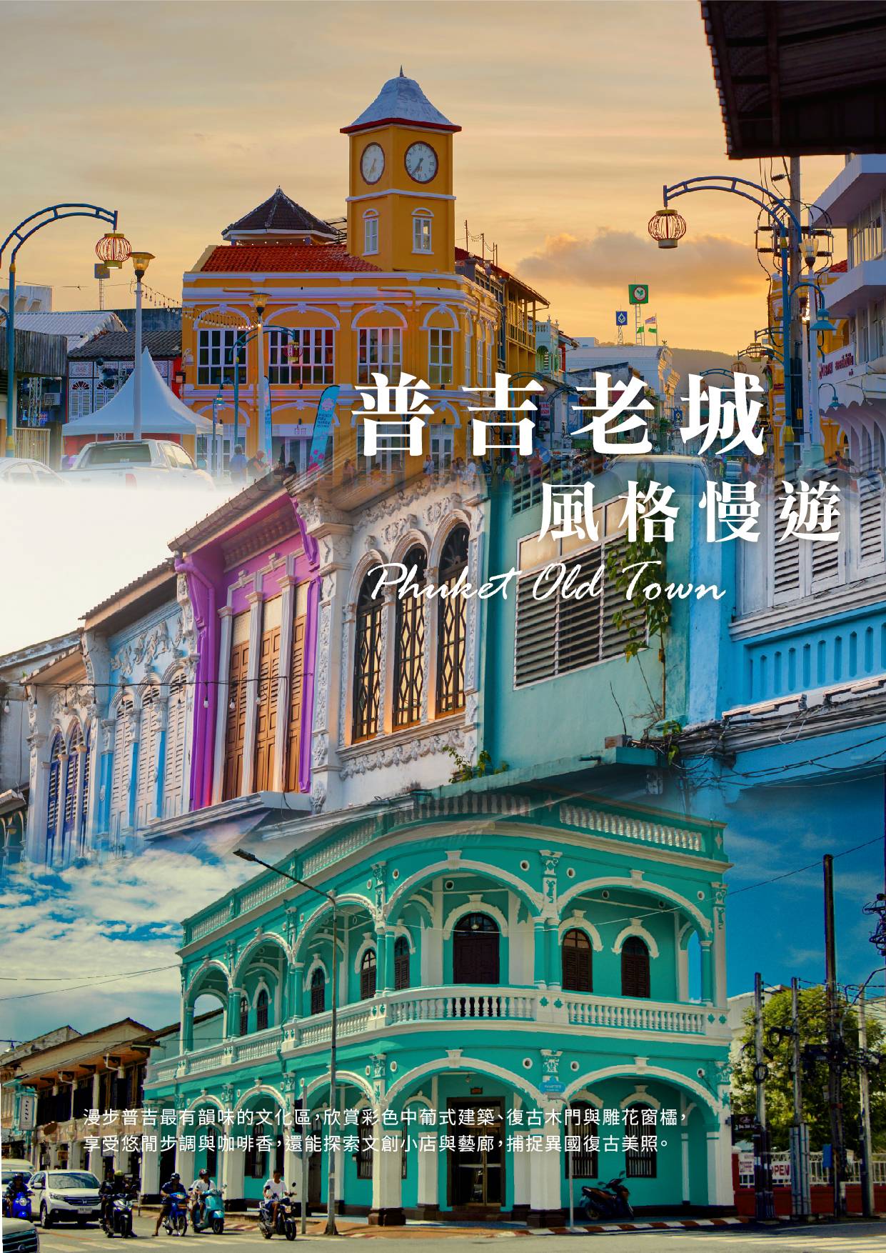 【老城風格慢遊】普吉最有韻味的文化地帶,也是想拍出異國復古美照、尋找文青風情與在地美食的必訪之地。這裡保留了19世紀末到20世紀初的「中葡式建築」,彩色外牆、雕花窗櫺與拱門迴廊,讓人一走進來就像穿越時空。白天陽光灑落在彩色建築上,非常適合散步拍照。
