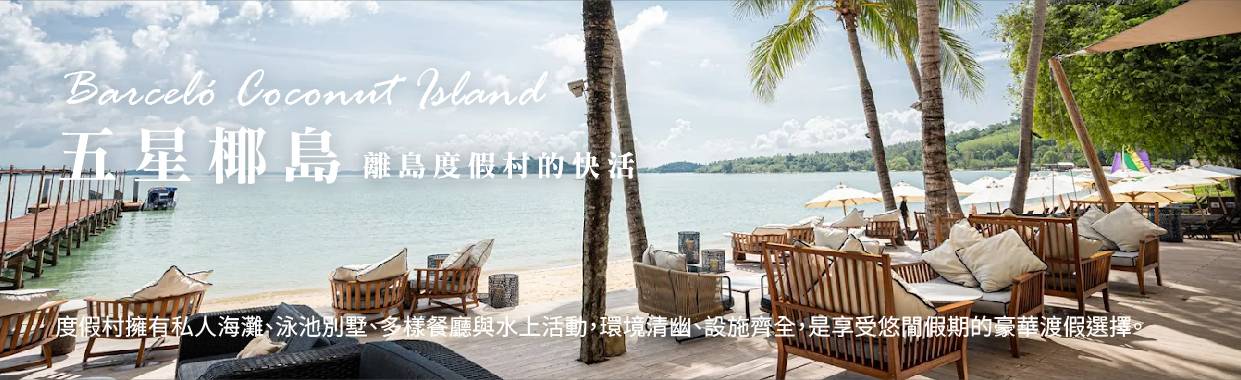 【椰島Barceló Coconut Island —離島純淨奢華度假風潮】一島一飯店的椰島是通往泰國絕美海灘、小島與壯麗景觀的絕佳門戶,地理位置得天獨厚,搭船只需5分即達彷如一片靜謐的天堂。是普吉少有擁有獨立沙灘的度假村。
