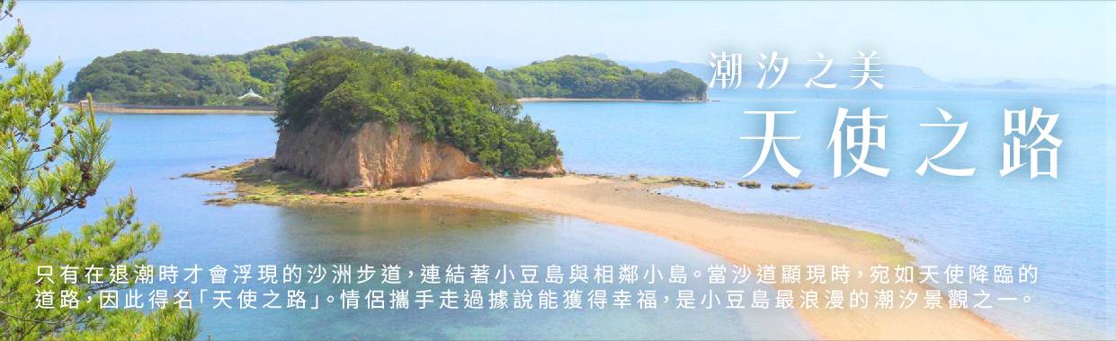 【天使之路】天使之路是指一條延綿 500 米的沙洲,這個沙洲只有在一天兩次的退潮期間才會出現,沙洲出現之後,形成了一條連接各個小島(「與島」)的黃金通道。據說,手牽手走過天使之路登上與島的戀人,都會擁有美滿甜蜜的愛情。