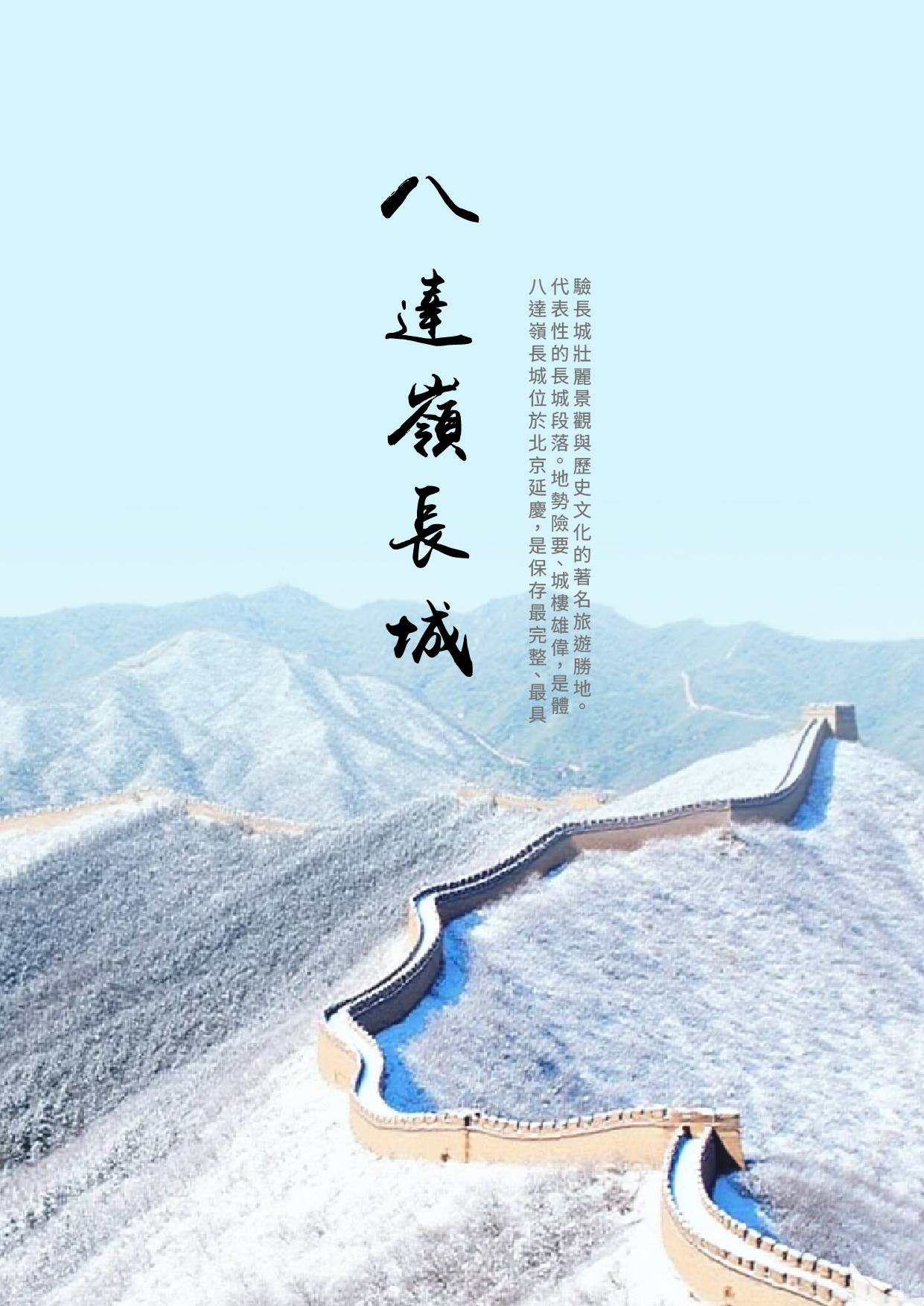 整理好行李、帶上期待,我們踏上前往旅途啦!讓我們一同期待體驗人文、美景與美食交織的精彩時光北京是中國的首都,也是世界知名的歷史文化名城和現代化大都市。這裡融合了三千多年的古都文明與當代的國際都市風貌。北京自元朝以來一直是中國的政治中心,擁有豐富的皇家遺產。現在更是政治中心:中國政府及中南海、天安門廣場所在地。