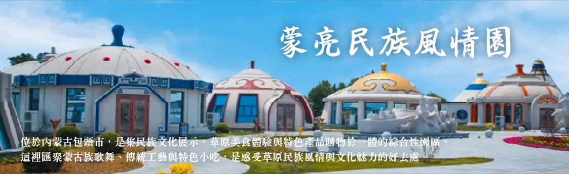【蒙亮民族風情園】國家4A級旅遊景區,以蒙古文化為主的綜合文化旅遊景區。同時也是內蒙古地區最大的民族民貿產品生產港口,也是內蒙古旅遊的核心景點。蒙亮民族風情園佔地約300畝。建築風格獨特,融合了蒙古地區傳承千年的建築裝飾風格。是了解當地特產、美食、文化等最方便的一個地方。