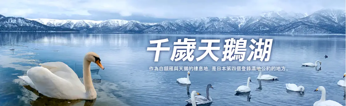 【天鵝湖】位於新千歲機場的南邊,作為白額雁與天鵝的棲息地,是日本第四個登錄濕地公約的地方。約有250種鳥類會在南遷時經過。