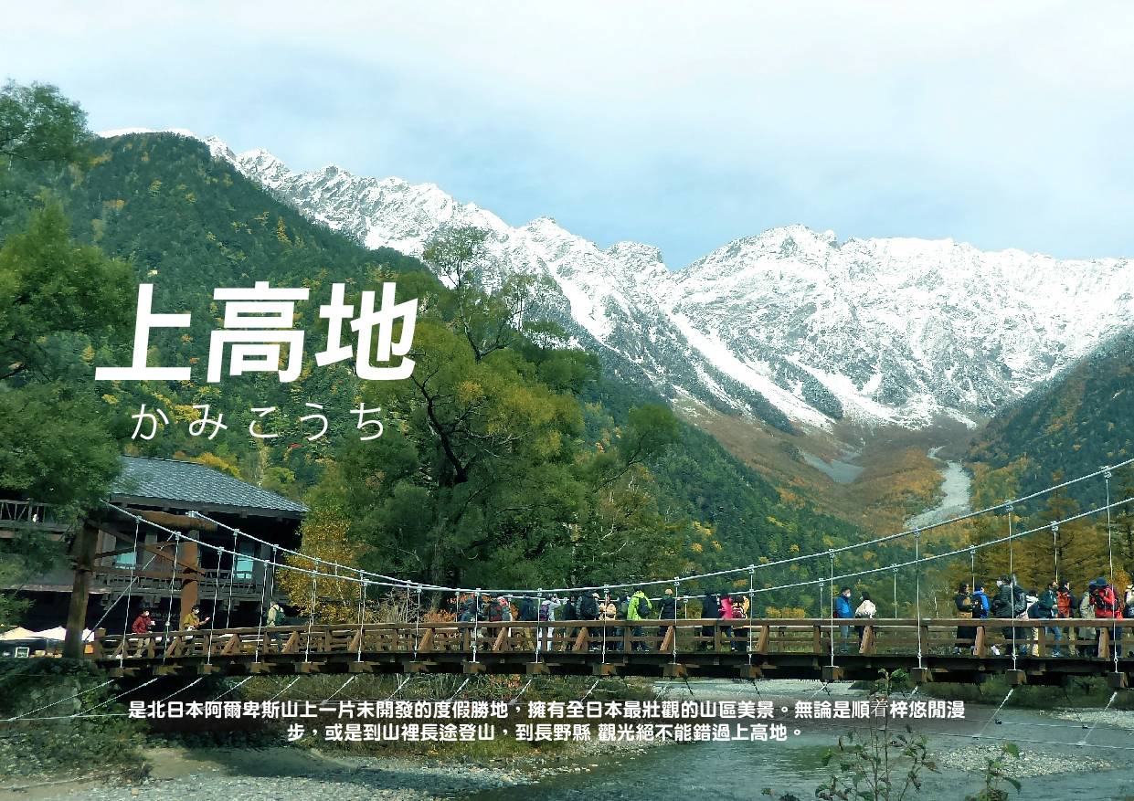 ※備註1:上高地預計開放期間:4月20日~11月15日,若遇上高地尚未開放或者因氣候及路況等因素而無法進入時,行程將改往【松本城】,敬請了解。