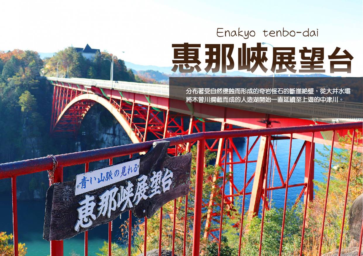 【惠那峽展望台】惠那峽位於日本中部的岐阜縣,是攔截木曾川形成的人工湖,位於綿延12公里受自然侵蝕而成的斷崖絕壁之間,形成壯麗的峽谷景觀,是水壩湖百選之一。