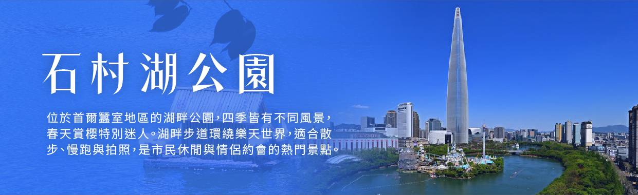 【石村湖公園】目前位於石村湖北邊的蠶室平原,原位於西湖南端渡口的漢江邊。經過歲月流逝土壤堆積,出現了新的人工島,從廣津橋橋墩下至蠶室棒球場也形成了新的支流,匯入如今流經石村湖的松坡江與新川江。1969年著手於開發漢江主河道河床整頓工程時,決定將支流填埋,只留下部分水域。源於漢江的石村湖因此於1971年誕生,而後在1980年代初期,湖泊被重新整頓,才建成今日的松坡渡口公園。