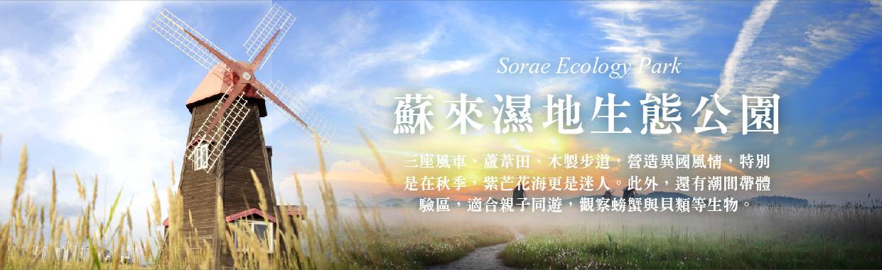【蘇來濕地生態公園】總面積約350萬㎡,其中以廢鹽田為中心的66萬㎡於1999年6月開放。生態展示館是改造鹽田倉庫而成,展示著百脈根和海棠花等鹽生植物的照片,以及製鹽的景象、蘇萊浦口的照片等。2001年4月擴大為生態學習場,由公園諮詢館、生物壁畫館、自然能量體驗館、仁川第21宣傳館、仁川環境NGO活動情況館等組成。
