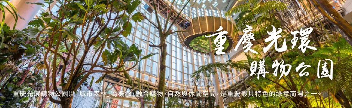 【光環購物公園】是由香港置地集團打造的中國國內首個「城市自然共同體」商業,也是其商業品牌「光環」的首個亮相項目。重慶光環購物公園位於重慶軌道交通5號線與15號線(在建)重光站,地處重慶兩江新區核心商務區,毗鄰照母山公園旁的香港置地約克郡住宅區,金州大道與湖彩路兩條主幹道垂直抵達。工程總建築面積達42萬平方米,其中約17萬平方米為購物中心,11萬平方米為超5A甲級辦公大樓,以及7萬平方米室內外城市綠色公園,集國際輕奢、都會潮流、親子家庭、環球佳餚、百變社交等商業業態於一體。