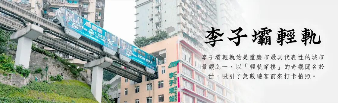 【李子壩輕軌】位於重慶市渝中區,是重慶輕軌 2 號線的一個特色車站,以「列車穿樓而過」的景象聞名。列車進入李子壩站時,會從居民樓中穿過,形成獨特的都市景觀與視覺衝擊。這裡不僅展示了重慶因地制宜的立體城市規劃,也成為熱門拍照與觀光地點,吸引遊客親眼見證中國山城特有的立體交通魅力。