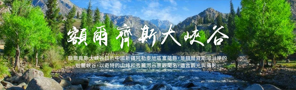 【額爾齊斯大峽谷】可哥托海國家地質公園中的一處主要景點。從可哥托海鎮溯額河而上,額爾齊斯大峽穀的精彩長卷開始展現。奔流不息的額河水,穿行於山脈、草地、密林中,畫出了一幅幅精美絕倫的畫面。沿額河對峙連綿排列的花崗岩山峰,峰壁圓渾,形態多樣,峰峰演繹著美麗的故事,堪稱一百單八峰。