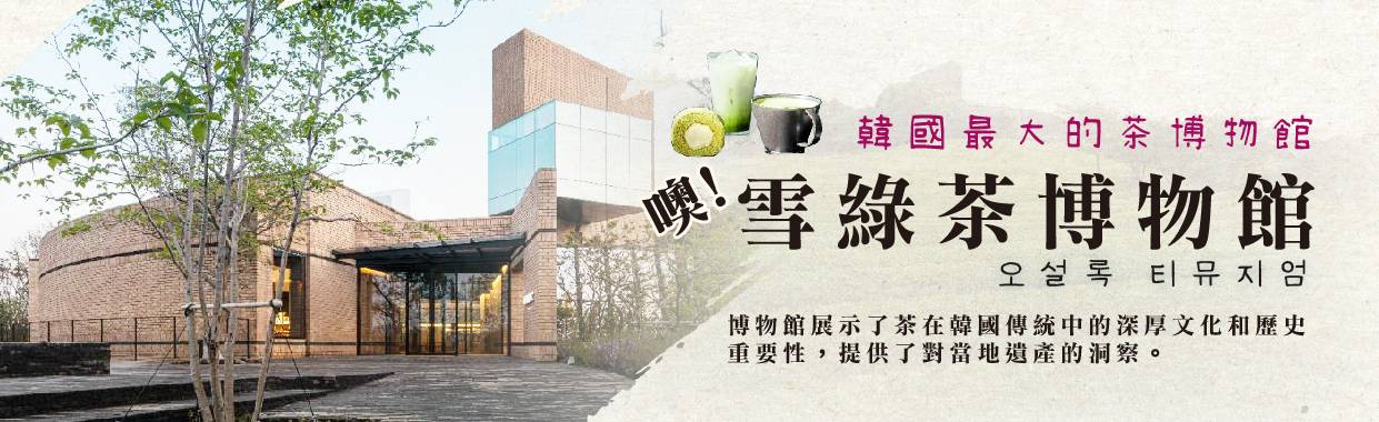 【噢雪綠茶博物館】韓國有名的名茶牌子雪綠茶的製造企業(株)太平洋開設的綠茶博物館。博物館佔地1650平方米,包含了茶的文化等方面。濟州島早晚溫差大,年平均氣溫和降雨量和土壤極適合茶葉的栽種。館內包括學習茶的歷史、生產過程的展示、陳列各種綠茶生產品的雪綠精品世界等。