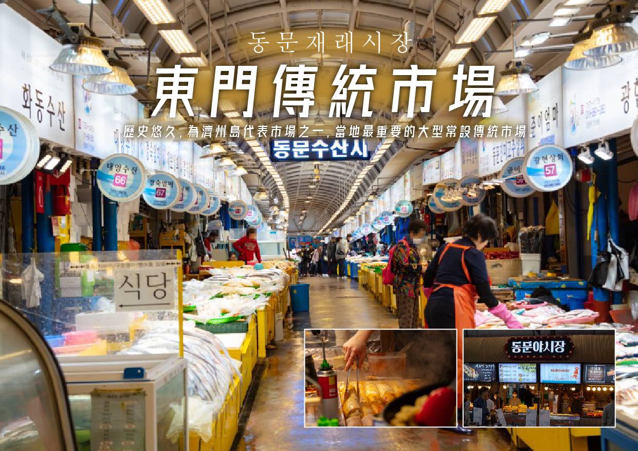 【東門傳統市場】1945年光復以後,濟州東門市場正式形成,是未來濟州商圈的中心地。東門市場保留著傳統市集的特點,與大型超市相比,商品種類繁多,價格低廉,且能少量購買。