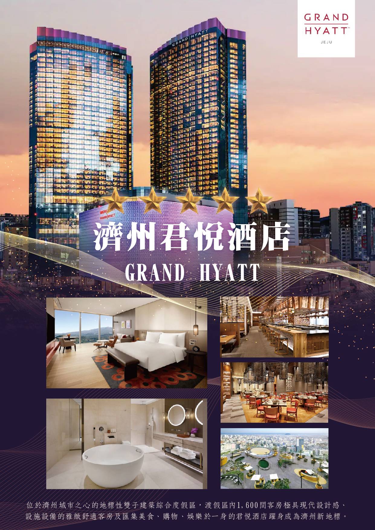 【頂級五星君悅酒店GRAND HYATT】位於濟州城市之心的地標性雙子建築綜合度假區,渡假區內1,600間客房極具現代設計感、設施設備的雅緻舒適客房及匯集美食、購物、娛樂於一身的君悅酒店躍身成為濟州新地標。