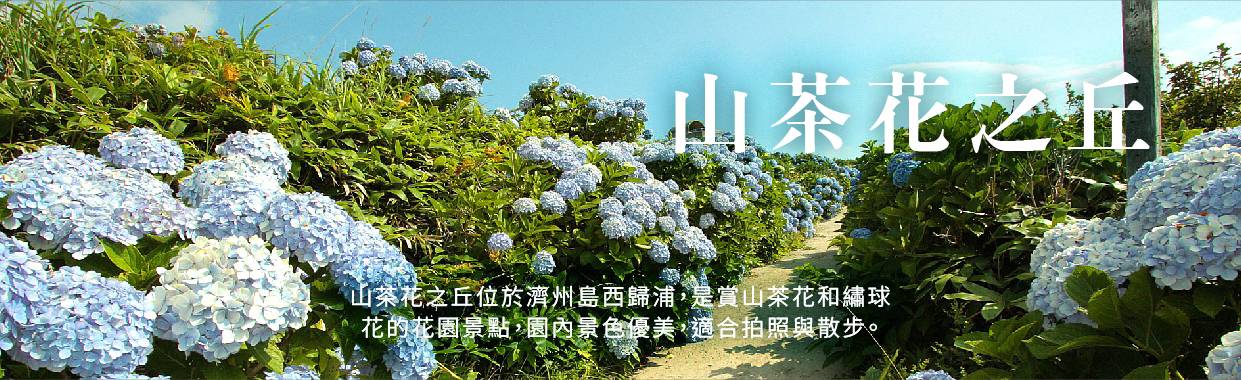 【山茶花之丘Camellia Hill】位於西歸浦市安德面上倉里,面積達172,000平方公尺的Camellia Hill擁有世界上最大的山茶花、花期最早的山茶花,以及散發香味的山茶花,共計有500多種、6000多株的山茶花樹聚集在此。Camellia Hill除了山茶花外,還種植了椰子樹等各種造型樹,為一造景樹木園。