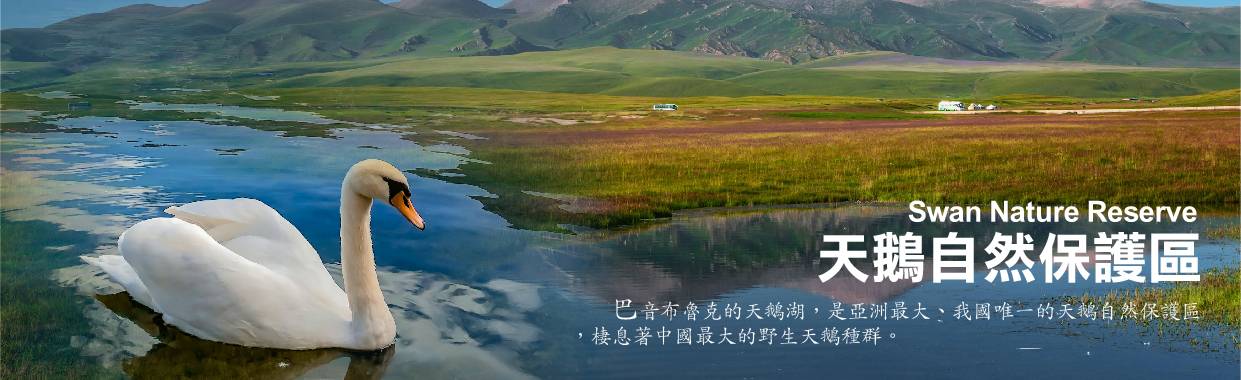 【天鵝湖】是由眾多相通的小湖組成的湖沼地。每年4月前後,大天鵝、小天鵝、疣鼻天鵝、雁鷗等珍禽鳥類陸續從南方飛回到這裡繁衍生息,陽光下,天鵝、湖水、山峰、雲影融成一片極為壯觀的景致。區內建有觀鳥台供遊人登高觀賞鳥類。中國惟一的天鵝自然保護區就坐落在大草原中。