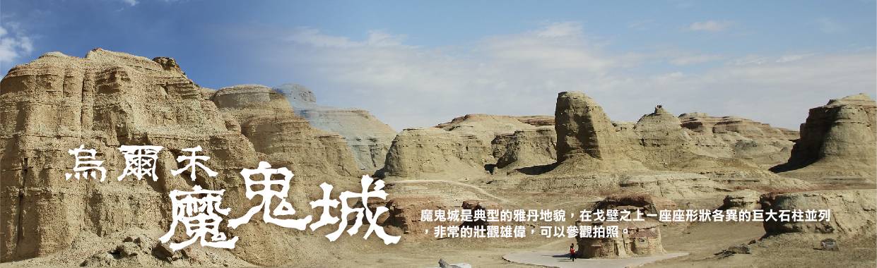 【魔鬼城】一處獨特的風蝕地貌,形狀怪異、當地人蒙古人將此城稱為“蘇魯木哈克”,哈薩克人稱為“沙依坦克爾西”,意為魔鬼城。其實,這裡是典型的雅丹地貌區域,“雅丹”是維吾爾語“陡壁的小丘”之意,雅丹地貌以新疆塔里木盆地羅布泊附近的雅丹地區最為典型而得名,它的演變過程是沙漠裡基岩構成的平臺形高地內部有節理或裂隙,暴雨的沖刷使得裂隙加寬擴大,之後由於大風不斷剝蝕,漸漸形成風蝕溝穀和窪地,孤島狀的平臺小山則變為石柱或石墩,這樣的地方就像是一座廢棄的空城,古書中稱它為“龍城”。看上去像是一座座古代的城垣、堡壘和宮殿,還有許多生動逼真的動植物造型景觀。每到夏秋季節這裡常常會刮起七八級大風,風沿著谷地吹過,卷著砂石發出淒厲的聲響,有如鬼哭狼嚎,“魔鬼城”的名字就是這樣得來的。堪稱為天然博物館。由於這裡景致獨特,許多電影都把魔鬼城當作了外景地,比如奧斯卡大獎影片《臥虎藏龍》。該地貌被《中國國家地理》“選美中國”活動評選為“中國最美的三大雅丹”第一名。