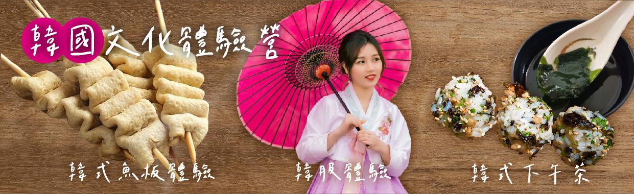 【韓國文化體驗營(韓式魚板體驗+韓服體驗+韓式下午茶)】將魚肉以及海鮮搗成漿製成的小吃,名叫「魚板」。魚板是釜山的代表美食,您可以在體驗場中直接製作魚板,由專業老師示範講解,遊客將魚漿塑形、依照自己的喜好擺放配料,製做出屬於自己的魚板。
