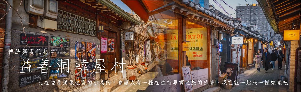 【益善洞韓屋村】位於首爾鍾路且歷史悠久的中心地帶,但相對來說,卻不太為人所知。但是近來因為有許多年輕藝術家和青年創業家落腳在此,並打造出十分具有個性的咖啡廳、餐廳以及手工藝品店等,讓益善洞成為能夠一次感受首爾多樣魅力的綜合文化空間,深受許多人的喜愛。而走在益善洞像迷宮的小巷內,會讓人有一種在進行尋寶之旅的感覺,現在就一起來一探究竟吧。