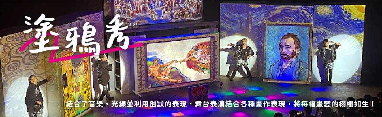 【塗鴉秀】結合了音樂、光線並利用幽默的表現,舞台表演結合各種畫作表現,將每幅畫變的栩栩如生,讓每幅畫在最後完成時都保證使您驚呼連連,讓您輕鬆地觀賞演出,同時體會最美的藝術氣息,您絕對不能錯過!※註:若遇秀休館或滿座,行程將作先後順序調整,不便之處敬請見諒!