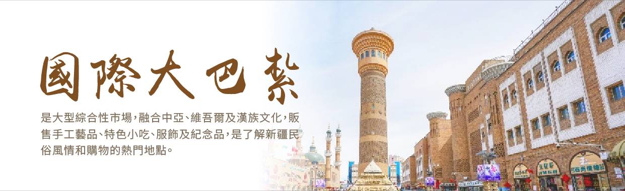 【新疆國際大巴扎】巴扎意為集市,位於烏魯木齊市天山區,是目前全國最大的巴扎集市。大巴扎的建築風格規模宏偉,又極具伊斯蘭風格,裡面市場的少數民族特色商品琳琅滿目,豐富精美。整個國際大巴扎是烏魯木齊市內最具民族風情的地方,來到烏魯木齊遊玩的遊客都會前來一看。