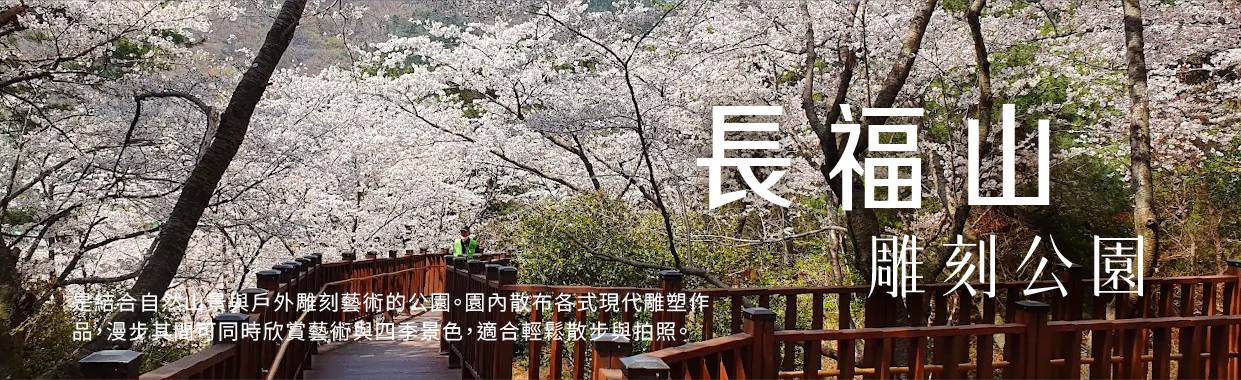 【長福山雕刻公園(賞櫻)】位於馬山與鎮海之間的長福路尾端,有著鎮海關門作用的公園,1979年為了恢復山勢而加建公園,在公園內可將只屬於鎮海的平靜海洋一覽無遺。週邊有大光寺、振興寺等寺廟。