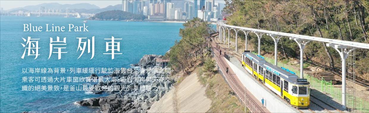 【Blue Line Park海岸列車】位於海雲臺尾浦-青沙浦-松亭區段長達4.8公里的舊鐵道所改建而成,是釜山海雲臺觀光特區的核心觀光設施之一,沿著海岸線一路延伸的鐵軌欣賞美麗的海景。