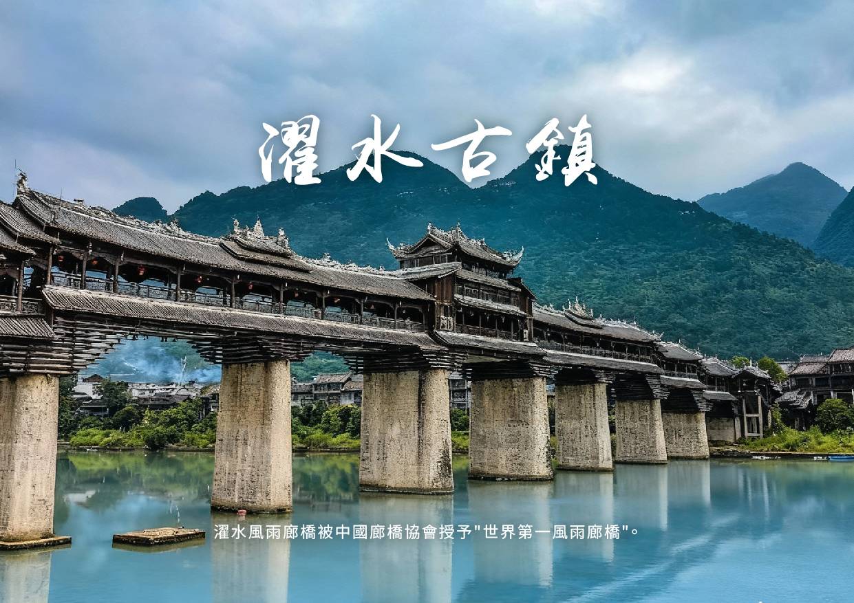 【濯水古鎮】曾是渝東南地區最富盛名的古鎮之一,也是巴人進退興衰、秦人金戈鐵馬的見證者。濯水古鎮位於重慶以東的黔江區濯水鎮境內,其以老街為主線,青石板鋪就,長約千米,街道兩旁有商號、民居、會館、學堂等建築以及一塊道德碑,入口處有一座古戲台,下街沿河保留有完整的土家吊腳樓群,美麗的阿蓬江上還有一座亞洲最長的風雨廊橋。