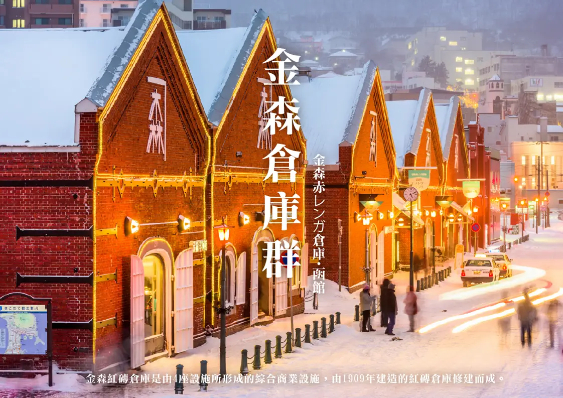【金森倉庫】金森紅磚倉庫是海灣地區的熱門景點。 面向海港的紅磚倉庫充滿異國情調,是函館最具代表性的景點之一。 紅磚倉庫於1887年開業,是函館的第一座商業倉庫,曾毀於一場大火,後重建爲現在的模樣。 後來,它在保留倉庫原貌的基礎上,被改造成購物和餐飲綜合體。