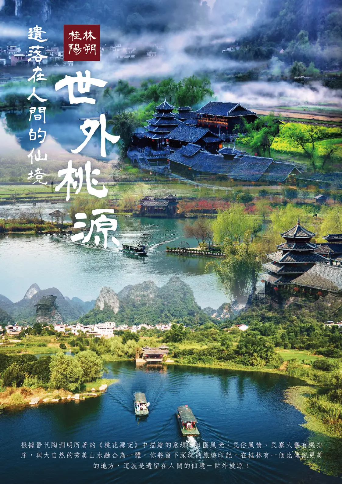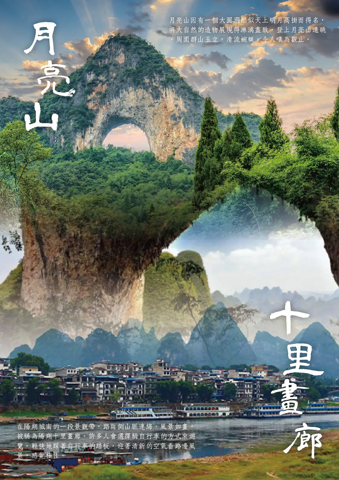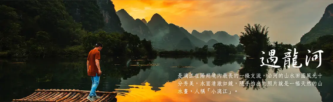 【桂林-陽朔】桂林至陽朔的旅程是沿著灕江進行,兩岸山脈起伏、景色宜人,是中國最著名的風光之一。這段旅程也充滿了田園景觀和濃厚的水鄉文化。