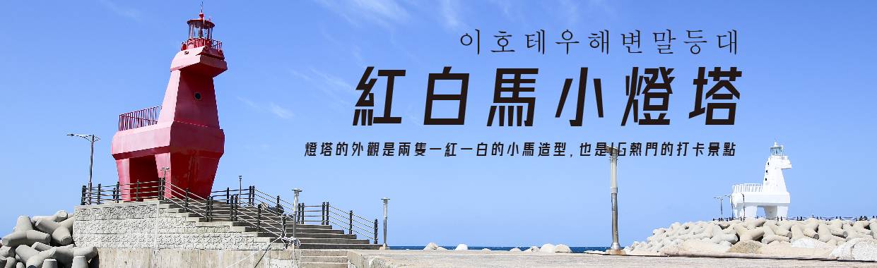 【梨湖海水浴場(紅白馬燈塔)】是最靠近濟州市區的海水浴場,交通方便且設備完善,沙灘坡度不高相對安全。夏天有許多避暑的訪客,海邊還有一片松樹林,適合野營也是它的另一個魅力。這裡的夜景也十分出名,所以就算是在晚間也有許多遊客。