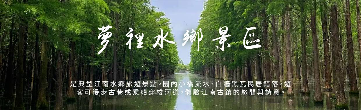 【夢裡水鄉】龐大的水利資源使得這裏成為一片天然大濕地,濕地中大大小小共有12座島嶼分散開來,島上分別種有水杉、牡丹、丁香、桃花、紫薇、玫瑰等數十種花草,它們可在不同季節呈現出不同美的美景。其中,水杉種植面積較大,一棵棵高聳入雲、清秀挺拔,春夏為翠綠色,而到了秋季就變成了耀眼的紅色,光彩奪目,吸引眼球。