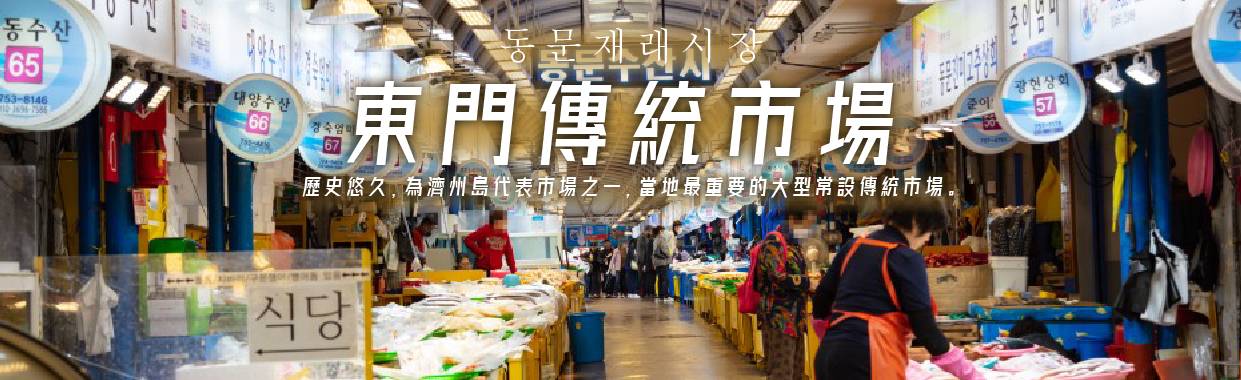 【東門傳統市場】1945年光復以後,濟州東門市場正式形成,是未來濟州商圈的中心地。東門市場保留著傳統市集的特點,與大型超市相比,商品種類繁多,價格低廉,且能少量購買。