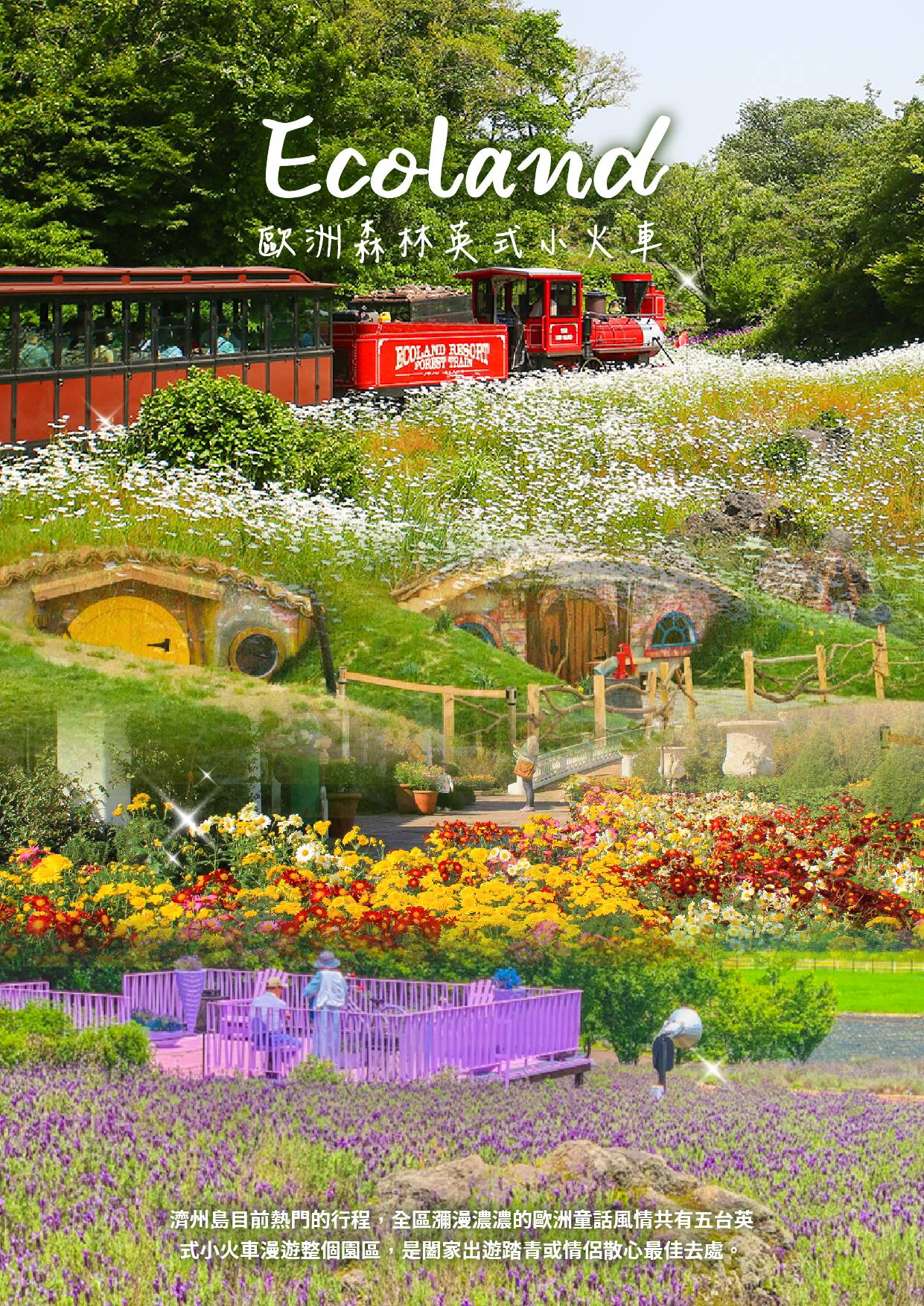 【Ecoland歐洲森林英式小火車】於2010年11月啟用,也是濟州島目前熱門的行程,全區瀰漫濃濃的歐洲童話風情共有五台英式小火車漫遊整個園區,是闔家出遊踏青或情侶散心最佳去處。