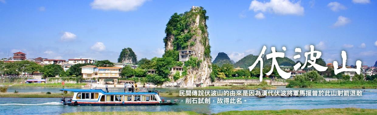 【伏波山】位於桂林城北的漓江之濱,是一座依水傍水的孤峰,有“伏波勝景”之美稱。伏波山孤峰挺秀,一半插入江潭,另一半則枕於陸地。