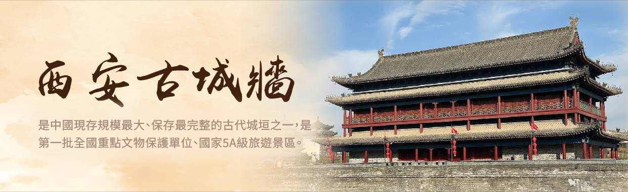 【西安古城牆】是中國現存規模最大、保存最完整的古代城垣之一,是第一批全國重點文物保護單位、國家5A級旅遊景區。廣義的西安城牆包括西安唐城牆和西安明城牆,但一般特指狹義上的西安明城牆。西安明城牆位於陝西省西安市中心區,牆高12米,頂寬12—14米,底寬15—18米,輪廓呈封閉的長方形,周長13.74千米。城牆內人們習慣稱為古城區,面積11.32平方千米,著名的西安鐘鼓樓就位於古城區中心。 西安城牆主城門有四座:長樂門(東門),永寧門(南門),安定門(西門),安遠門(北門),這四座城門也是古城牆的原有城門。從民國開始為方便出入古城區,先後新闢了多座城門,現西安城牆已有城門18座。