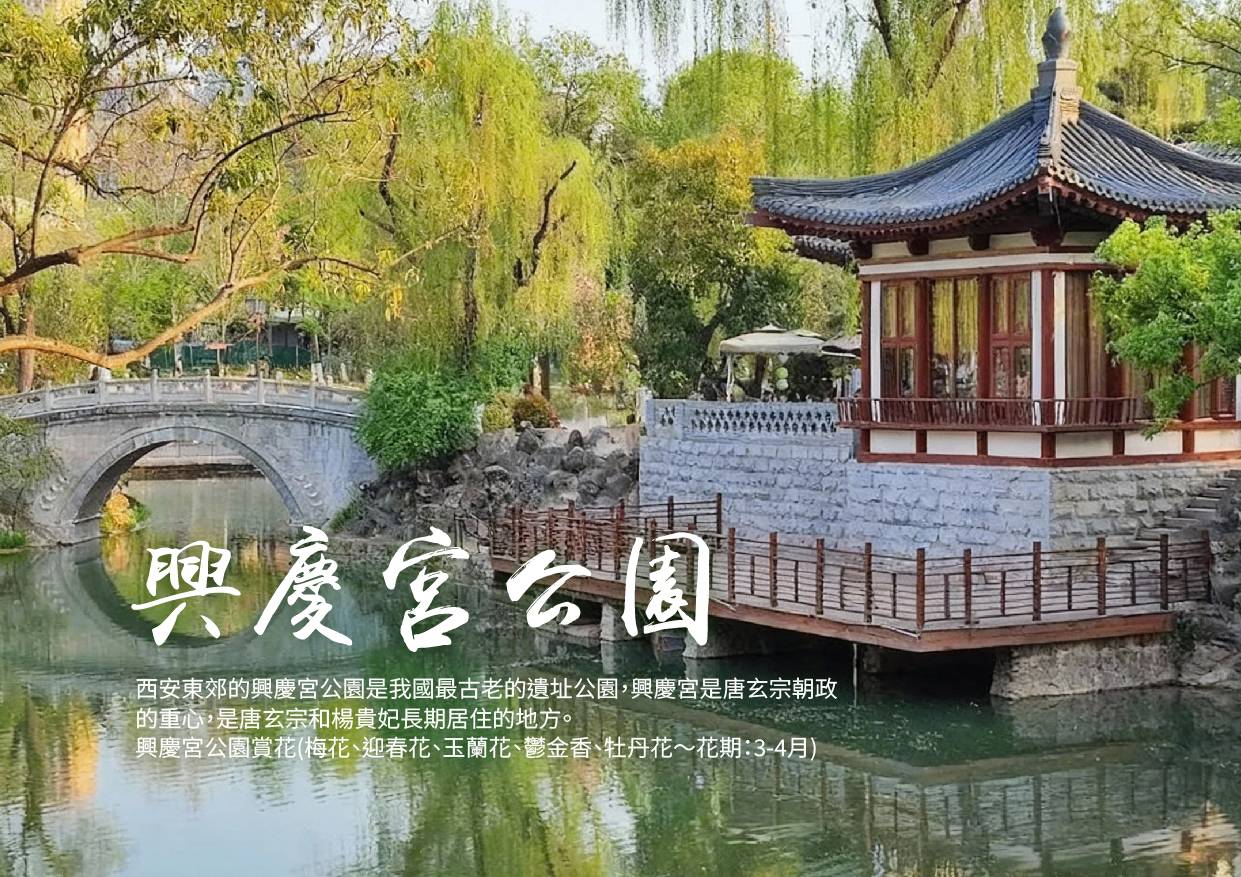 ※備註:興慶宮公園賞花期大約為3-4月,賞花行程如在花季時期遇到花未開或其他不可抗力因素如下雨、颳風或氣溫異常造成花況不如預期,團體仍按原行程至該景點純遊覽,敬請知悉!!!