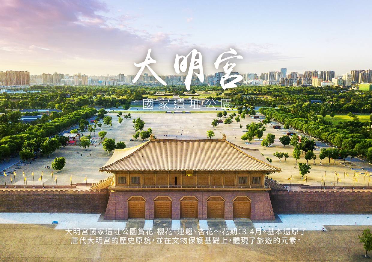 ※備註:大明宮遺址公園賞花期大約為3-4月,賞花行程如在花季時期遇到花未開或其他不可抗力因素如下雨、颳風或氣溫異常造成花況不如預期,團體仍按原行程至該景點純遊覽,敬請知悉!!!