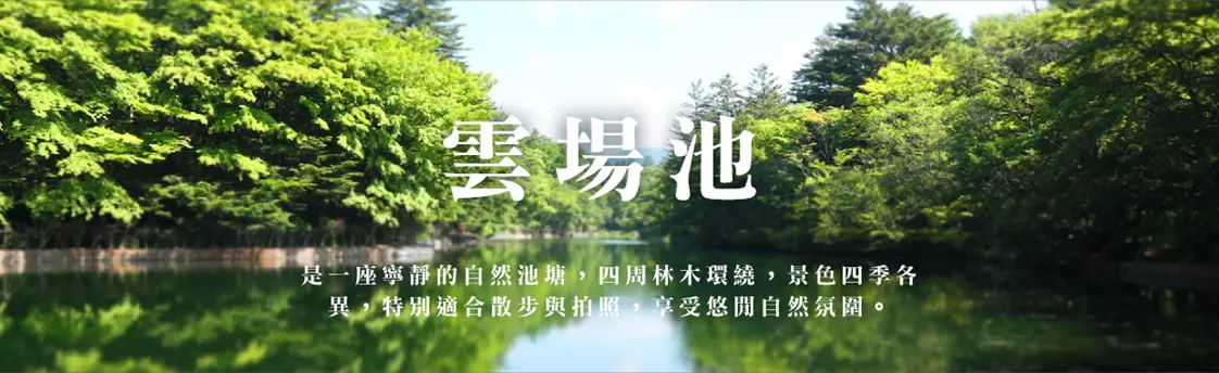 【雲場池】輕井澤三大名勝之一,以前每到冬天就會有天鵝前來,被來輕井澤遊玩的外國人譽為「天鵝湖」,深受喜愛。環繞池邊有平坦的散步徑,走一圈約20~25分鐘,可以放緩腳步欣賞倒映在湖面的如畫四季風景。四周幽靜雅緻,特別是無風之時湖面如鏡,可謂神秘莫測的瞬間美景。