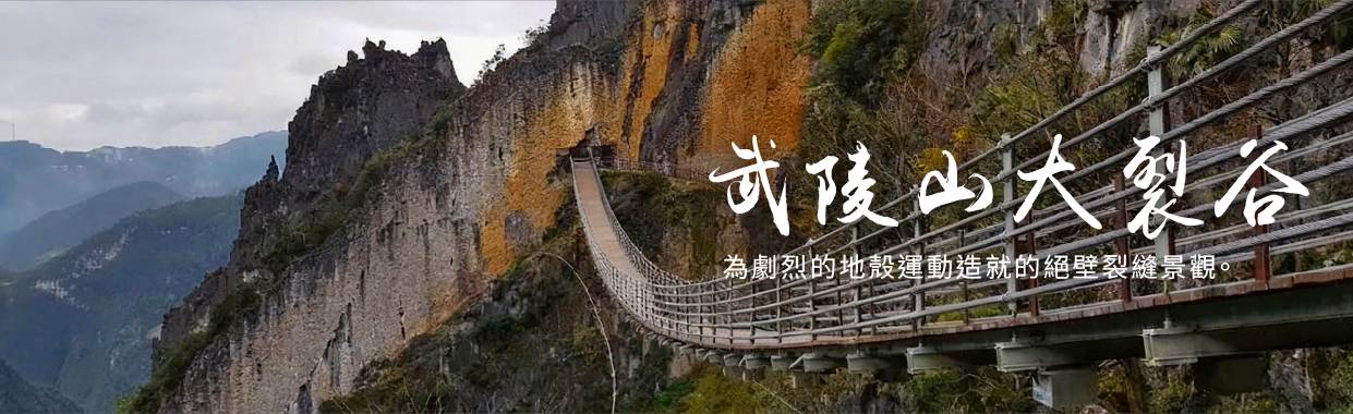 【武陵山大裂谷】武陵山大裂谷,位於重慶市涪陵區城東南約40千米的武陵鄉境內,武陵山系西北尾端,烏江下游東岸。為劇烈的地谷運動造就的絕壁裂縫景觀。大裂谷所屬山脈為古老的武陵山,是苗嶺分支,海拔在600~1980米。武陵山大裂谷景區占地面積29.96平方千米,由眾多峭壁、奇峰和地縫構成,是中國南方喀斯特地貌的典型代表。核心部分為一條長10千米的喀斯特地貌原生態峽谷,集山、林、泉、洞、瀑、湖、潭、峽、坑、縫於一體,旅遊資源豐富。十裡大峽穀雄闊壯美,谷底奇石疊壘,溪流淙淙,天然絕壁綿延數裡,著名的景觀有銅牆鐵壁、如來神掌、將軍石、青天峽地縫等。