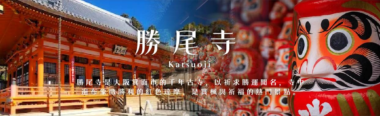 【勝尾寺】位於大阪箕面市的「勝尾寺」,以境內遍佈的「達摩不倒翁」而聞名,也被尊崇為祈求勝利和吉祥的寺廟。對於祈求合格與勝利十分靈驗,不但是許多生意人和學子喜歡參拜的地方,自古以來更是將軍武士以及現今政治人物等渴求勝運之人的信仰中心。