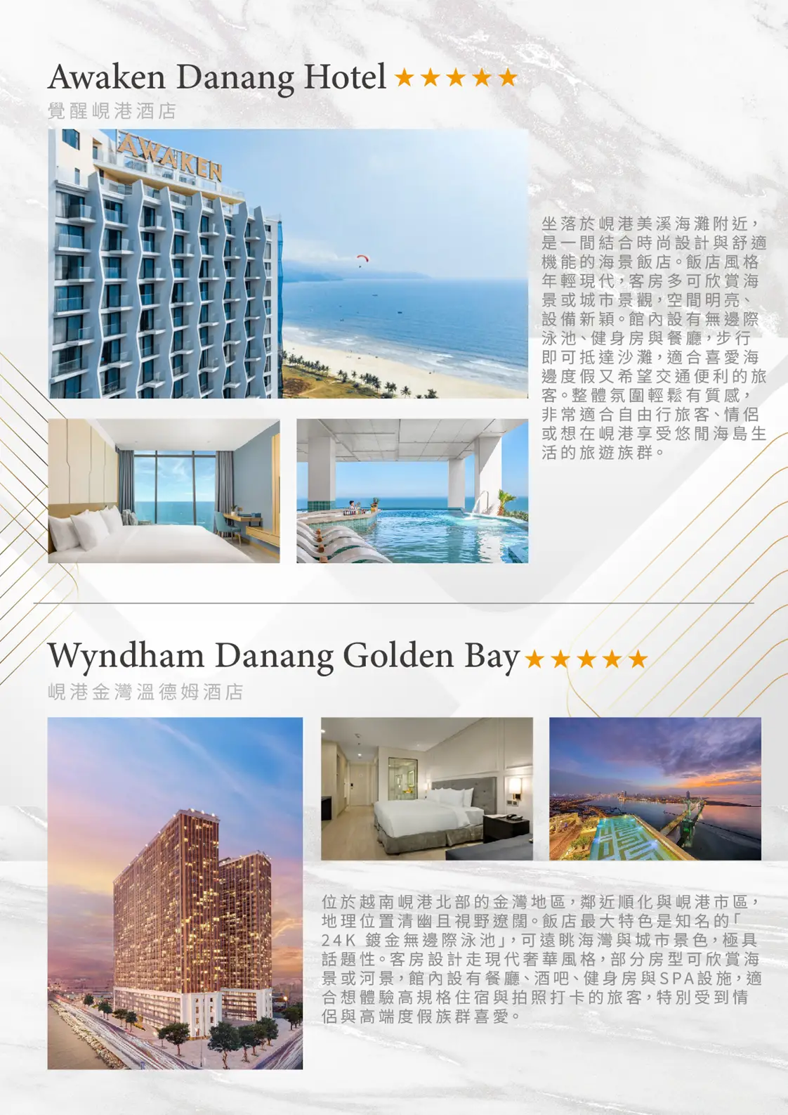 - ★★★★★Awaken Hotel 或 Wyndham Golden Bay Hotel 或 Peninsula Hotel 或同級