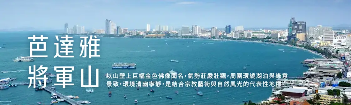 【芭達雅將軍山(Phra Tamnak Mountain)】是芭達雅知名制高點,位於市區核心,兼具自然景觀與歷史文化意義。登上觀景台可俯瞰整個芭達雅海灣,城市輪廓與藍色海景盡收眼底。無論是午後陽光或日落時分,都能欣賞截然不同的迷人景色,是拍攝海灣美景與俯瞰全景的絕佳地點。